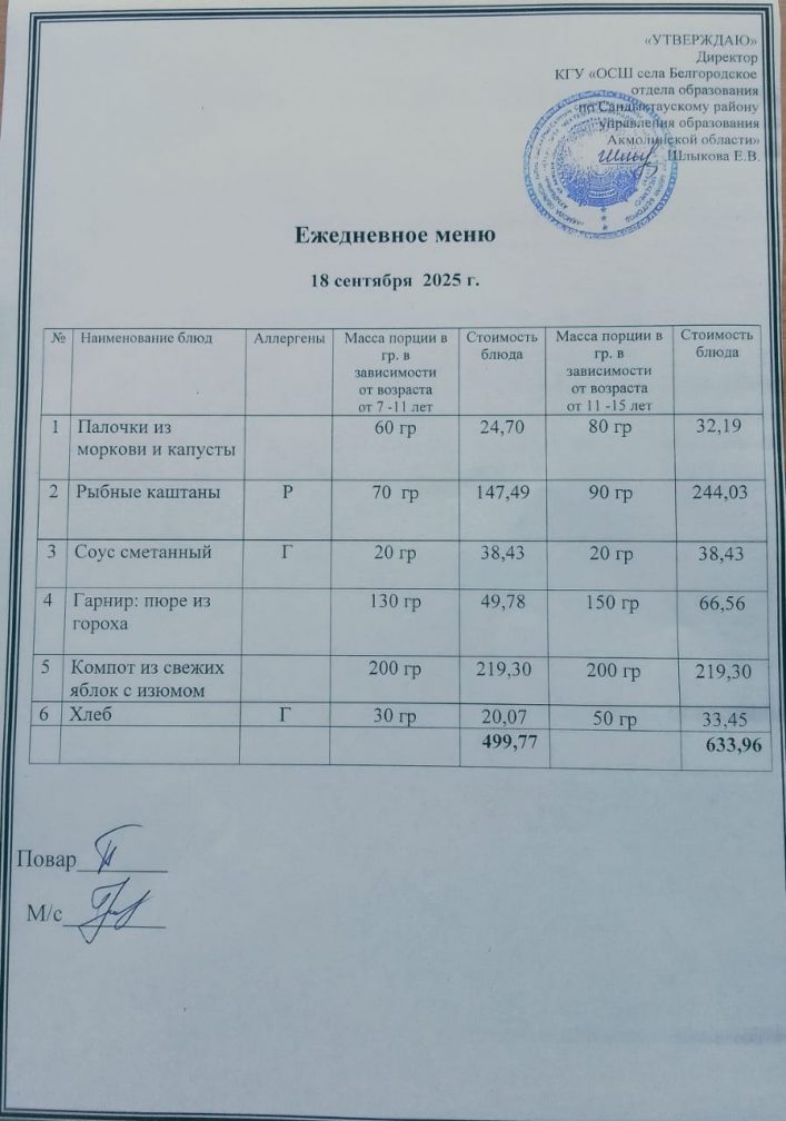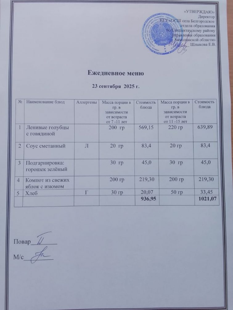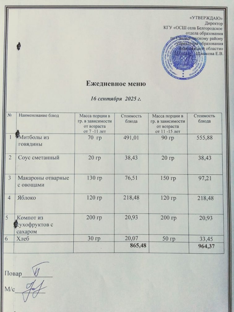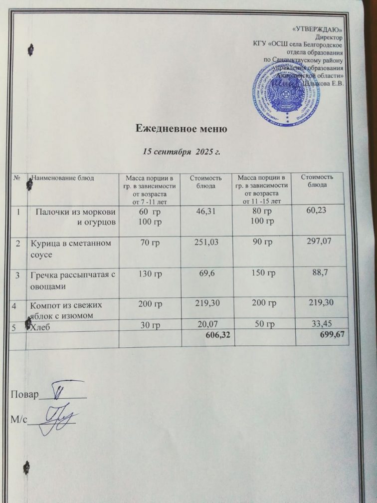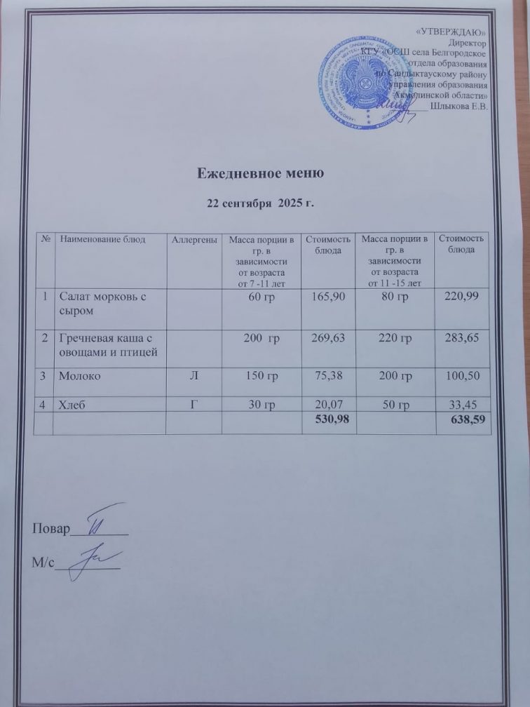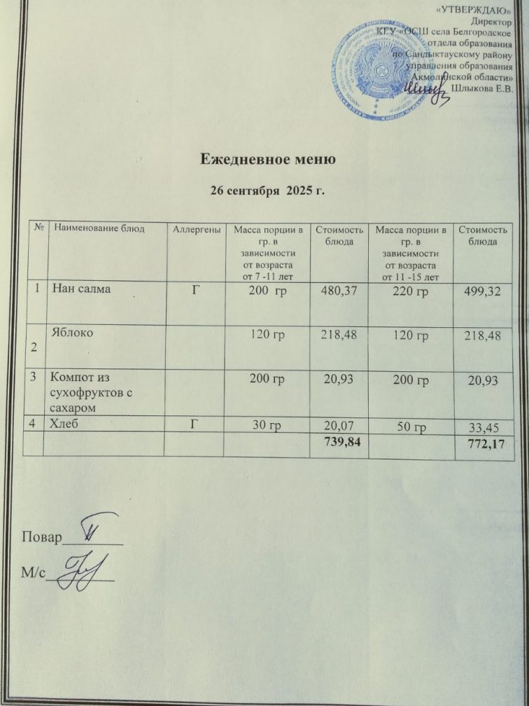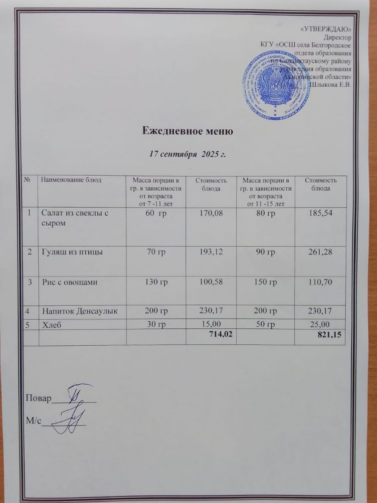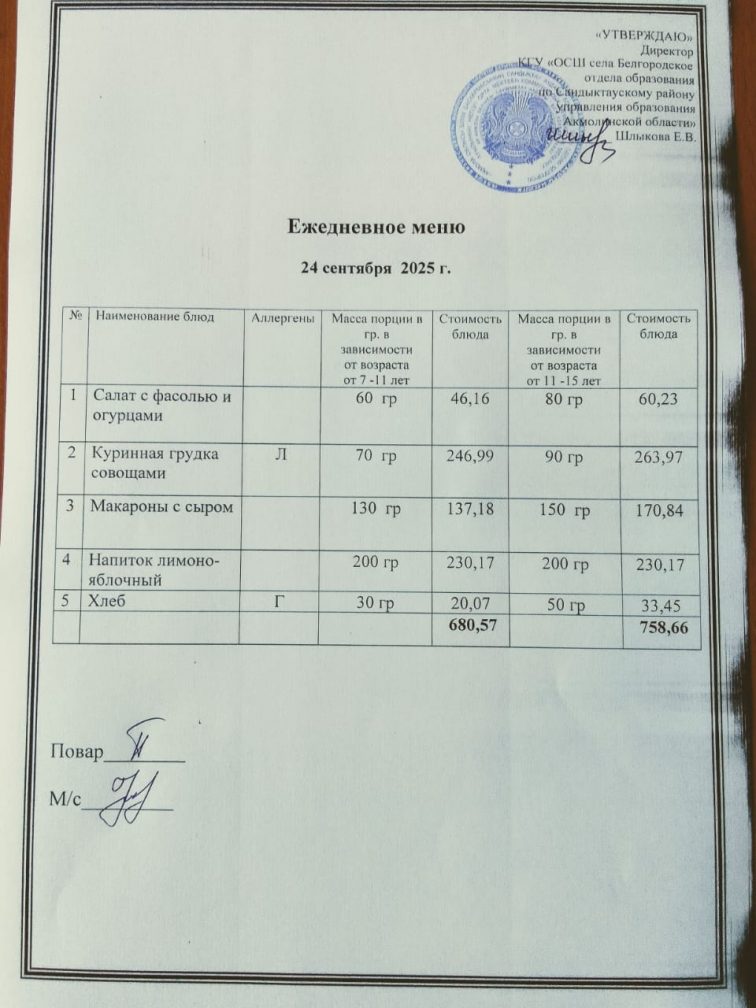 Апталық мәзір 1 тоқсан 2025-2026 оқу жылы