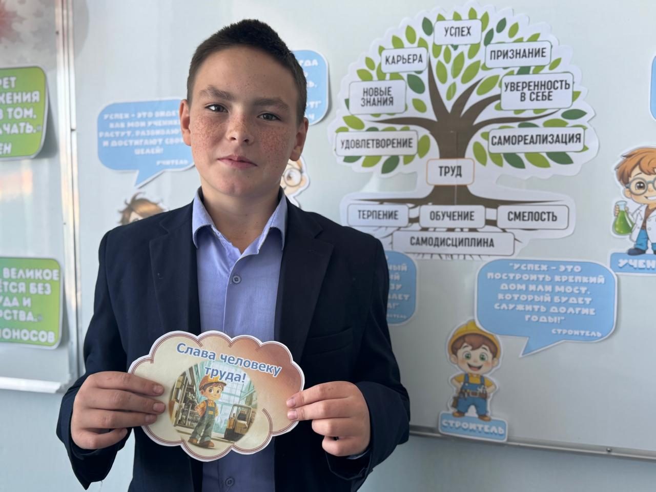 Біздің мектепте еңбек күнін мерекелеуге арналған сынып сағаттары өтті. Іс-шаралар оқушылардың әртүрлі кәсіптерге құрметпен қарауын қалыптастыруға және еңбектің маңыздылығын түсінуге бағытталған.