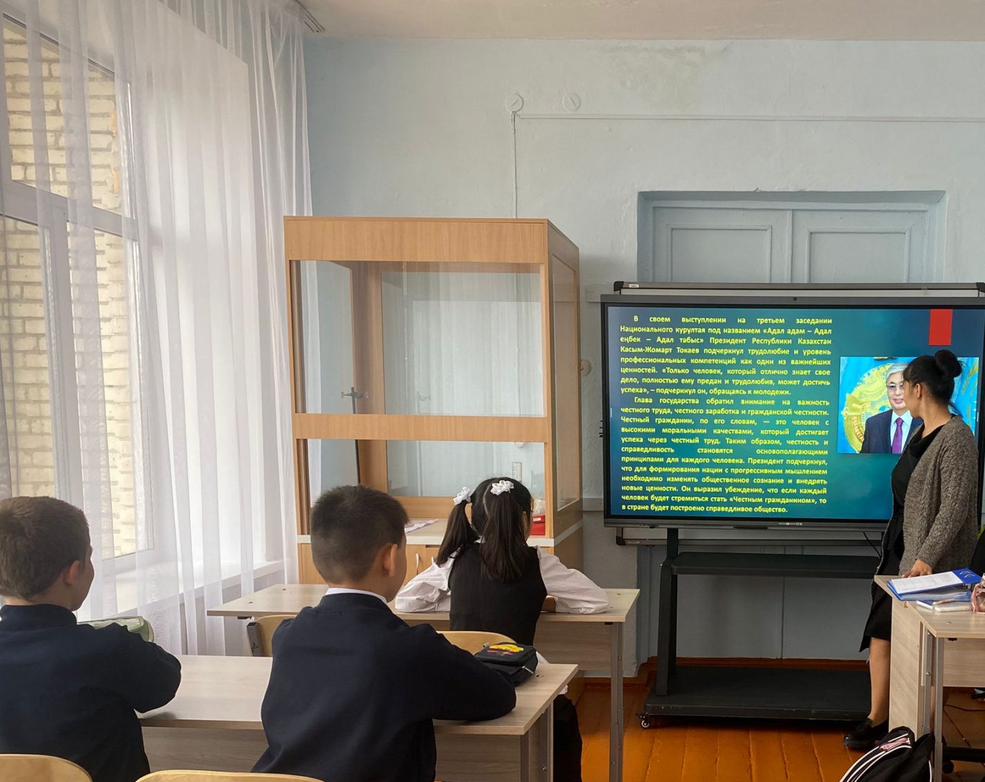 Сабақ барысында балалар қоғам өміріндегі еңбектің рөлін талқылады, әртүрлі мамандықтармен және олардың маңыздылығымен танысты. Бастауыш сынып оқушылары шығармашылық шеберлік сабақтарына қатысты, ал жоғары сынып оқушылары заманауи мамандықтар мен еңбек қызметінің келешегі туралы презентациялар дайындады.