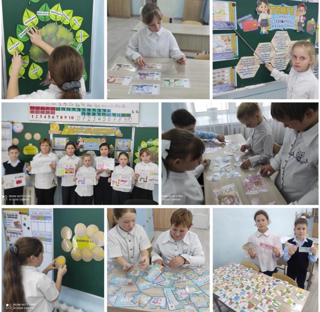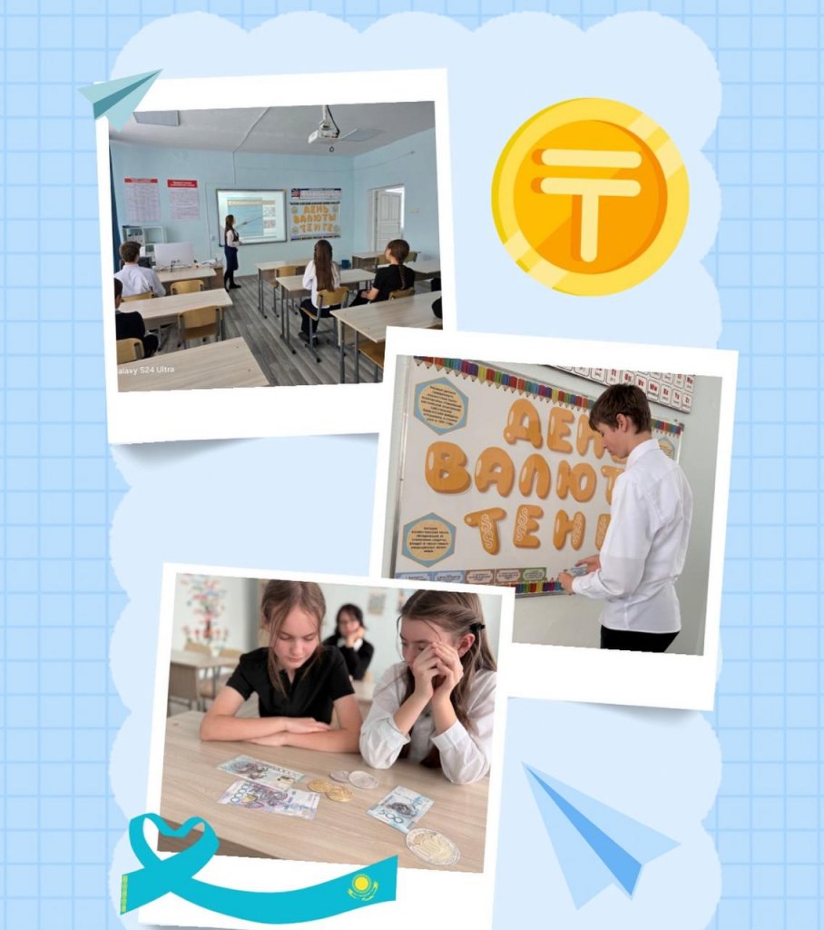 Іс-шара барысында оқушылар теңгенің пайда болу және даму тарихымен танысып, ұлттық валютаның елдің экономикалық тәуелсіздігі үшін маңызын білді.