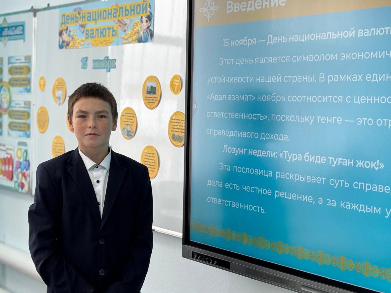 Біздің мектепте Қазақстан Республикасының ұлттық валютасы – теңге күніне арналған сынып сағаттары өткізілді.