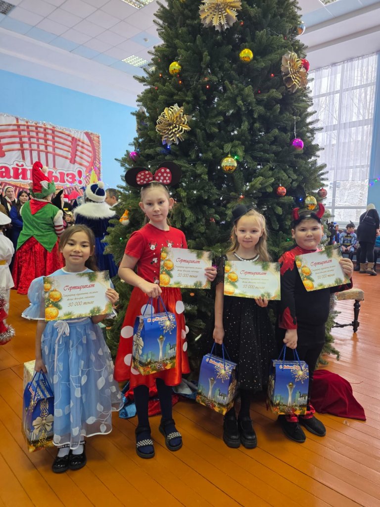 Бүгін мектебіміздің оқушылары — Авсейко Александра, Евменов Макар, Маубиева Назира және Парфёнова Таисия Сандықтау ауданы әкімінің Жаңа жылдық шыршасына қатысты.